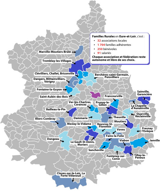 Vous pouvez retrouver ici une carte de nos différentes associations présentes sur le territoire Eurélien :